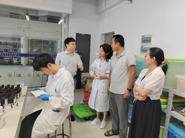 深入一线,察实情听心声。调研组先后走访了湖南省地质实验测试中心、长沙矿冶院检测技术有限责任公司2家长期合作的优质实践教育基地。每到一处,公司领导都深入企业研发中心或项目现场,实地察看员工实习环境和具体岗位工作情况。在湖南省地质实验测试中心的检测岗上,调研组看到本院强基计划应用化学T2201班的员工正熟练地参与产品检测、物质分析等核心工作;在长矿检测的分析部门,应用化学2204班的实习生们正全神贯注地投入各项测试工作中。