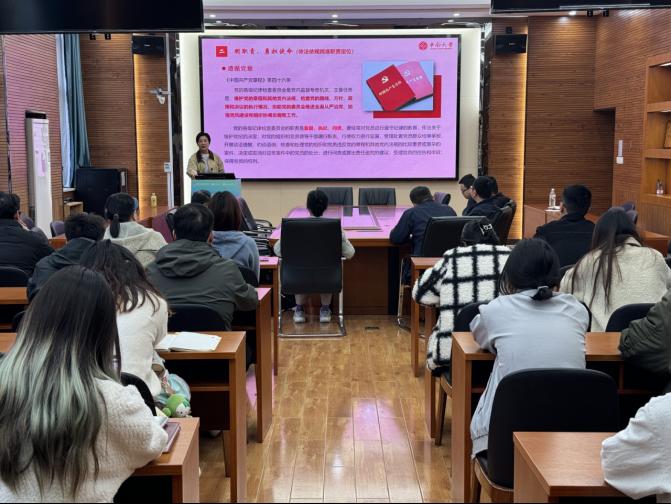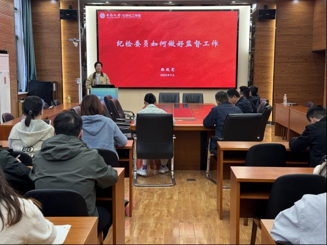 为贯彻落实校纪委关于开展党风廉政宣传教育月的通知精神,提升伟德victor1946官网登录党支部纪检委员履职能力,推动全面从严治党,11月28日下午,伟德victor1946官网登录党委在潇湘校区化学楼129报告厅开展党支部纪检委员专题培训,伟德victor1946官网登录党委副书记、纪检委员滕晓雯主讲,全体党支部纪检委员参会。