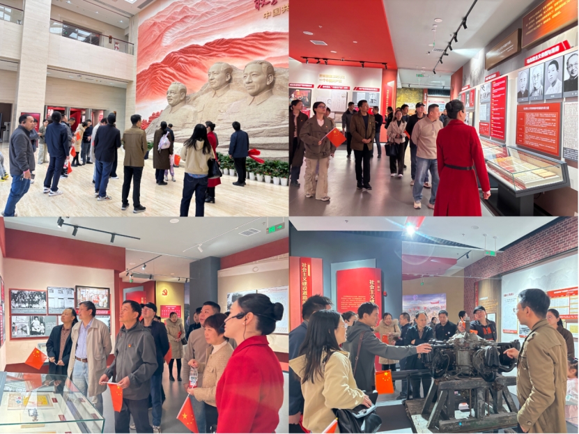 在庄严肃穆的中国共产党湖南历史展览馆,同志们怀着崇敬的心情,沿着历史脉络,通过一幅幅珍贵的图片、一件件厚重的实物、一段段详实的文献,系统回顾了党领导湖南人民进行革命、建设、改革的波澜壮阔的百年征程,深刻感悟了老一辈无产阶级革命家与湖湘英烈的崇高精神和丰功伟绩。在展馆前,全体党员手持“坚定理想信念 发挥党建引领核心”的横幅合影,表达了将红色基因融入血脉,始终坚持党的领导,以高质量党建引领教学科研事业高质量发展的共同决心。