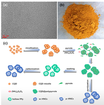 近日,公司纪效波教授课题组在碳量子点材料的宏量制备、微结构调控及电化学储钾应用方面取得新进展,相关研究成果“Carbon quantum dot micelles tailored hollow carbon anode for fast potassium and sodium storage”发表于国际知名期刊Nano Energy(IF= 15.548,DOI: 10.1016/j.nanoen.2019.104038)上,侯红帅特聘副教授为该论文的通讯作者,2017级硕士生洪弯弯为该论文的第一作者。