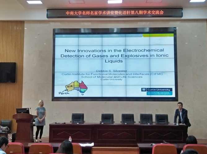 2019年5月22日上午10:00-11:30,在伟德victor1946官网新校区化学楼133报告厅举办了主题为“Electrochemical Detection of Gases and Explosives in IonicLiquids”的学术讲座,报告人是来自澳大利亚科廷大学的Debbie S. Silvester副教授。该讲座由纪效波教授主持,来自全院相关学科的师生们聆听了Debbie S. Silvester副教授的精彩讲座。