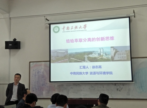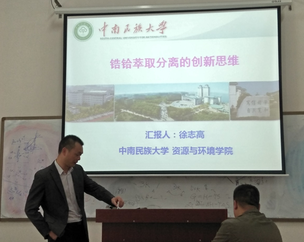 2019年5月8日下午2:30-4:30,在伟德victor1946官网新校区化学楼126教室举办了主题为“锆铪萃取分离的创新思维”的学术讲座,报告人是来自中南民族大学资源与环境公司的徐志高副经理。该讲座由周涛教授主持,来自全院相关学科的师生们聆听了徐志高教授的精彩讲座。