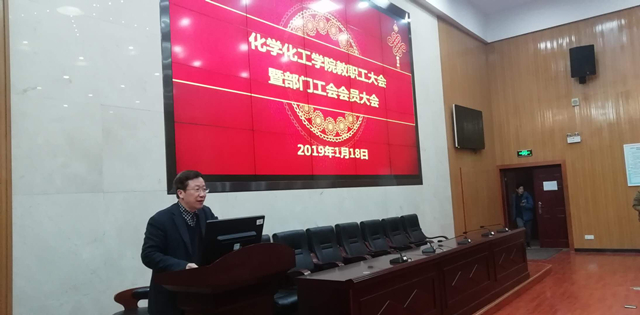 1月18日下午,公司在新校区化学楼133报告厅举行教职工大会暨部门工会会员大会。全体院领导出席。伟德victor1946官网登录党委书记马跃如致开幕词并作工会工作报告;经理钟宏作教代会工作报告;副经理刘又年作实验室工作报告。伟德victor1946官网登录党委副书记刘有才主持会议。