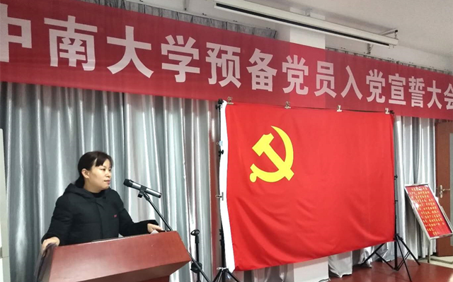 朱敏代表伟德victor1946官网登录党委对新入党的同志表达了祝贺,并从端正入党动机、牢记全心全意为人民服务的宗旨和在学习生活中发挥党员先锋模范作用等三个方面对预备党员们提出了更高的要求,激励大家要热情拥抱新时代,奋勇建功新时代,把自己锻造成担当民族复兴大任的一代新青年。