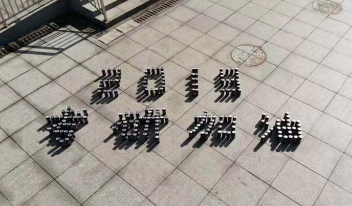 在拍摄之前,支部定制了一批可乐,这些可乐的瓶身均印有对考研学子满满的祝福——有的引经据典,比如“为中华之崛起而读书”;有的用理化概念引申特殊含义,“我们做着布朗运动,却依然举重若轻”、“愿你像石灰,越泼你冷水你越沸腾”;有的蕴含着深深的祝福,“你曾披星戴月,必将荣耀凯旋”……支部成员用可乐在化学楼前坪摆下“2019 考研加油”字样,利用航拍技术从云端俯瞰化学楼,字样不断清晰,可乐瓶被不断放大,支部成员将其送往图书馆……