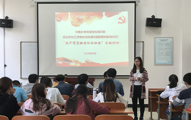 4月18日下午16:00,伟德victor1946官网登录党委分党校第5期发展对象培训班在新校区化学楼128召开“共产党员的责任与担当”专题讨论。本次会议由班导师杨宵老师主持,培训班全体学员参与讨论会。