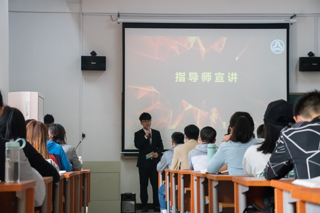 会议伊始,主持人介绍宣讲会流程,并对“USC计划”做具体介绍,让大家对“USC计划”有更深入的了解。接着由校十佳USC指导师称号获得者,同时也是伟德victor1946官网登录第一届USC双创竞赛团队指导师郭天啸做团队经验分享,郭天啸介绍说成为USC指导师一方面是可以锻炼自己的能力,另一方面大家也能相互学习、共同提高,此外郭天啸还强调了团队协作的重要性,听完郭天啸的经验分享,大家都获益匪浅。