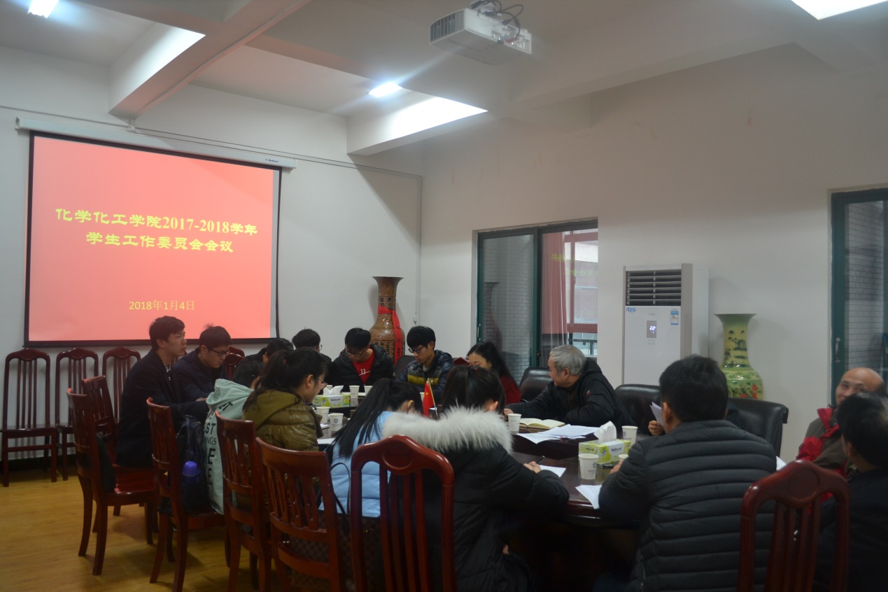 2018年1月4日上午10:00,伟德victor1946官网登录2017-2018学年学工委会议于新校区化学楼229顺利召开。本次会议由化工院学工委主任、经理钟宏教授主持,学工委教工委员党委副书记刘有才、副经理陈晓青、制药工程系支部书记钟世安、应用化学系支部书记黄健涵、学工办副主任杨娟、14级辅导员周发、17级辅导员刘世宏以及全体员工委员共同参加。