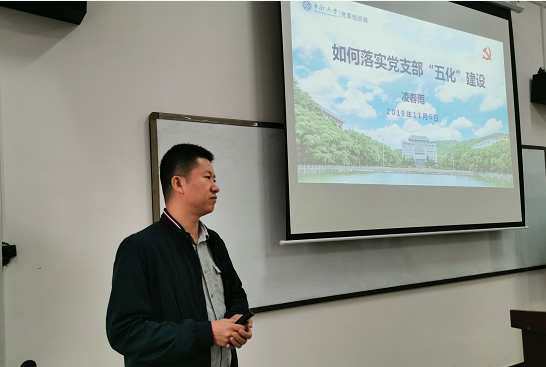 凌春雨以“如何落实党支部‘五化’建设”为主题,逐条阐述和解读了支部设置标准化、组织生活正常化、管理服务精细化、工作制度体系化、阵地建设规范化等方面的详细内容,以总结梳理出的公司各党支部在基层党建工作中遇到的突出重点难点问题为导向,深刻剖析问题产生原因,并结合自身工作经验,重点对支部建设、三会一课、党日活动、党员教育管理、党费收缴、组织生活会、谈心谈话、发展党员工作等八个方面做了详细讲解,提出诸多工作改进的建议和意见。