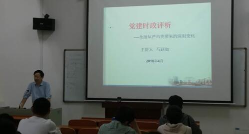 党课伊始,马跃如教授以当今时政热点问题中美贸易战为切入点展开叙述,为学员展示了社会主义集中力量办大事的优越性,紧接着,马跃如教授从“凝聚民心,赢得道义”、“激浊扬清,重塑价值”、“治党有力,引领复兴”三个方面为学员们详细介绍了十八大以来反腐倡廉建设所取得的成就,并结合案例为学员展示了全面从严治党为党风、政风所带来的变化。党课最后,马跃如教授希望学员们能够在以后的日子里严于修身、严于律己,遵守党章党纪,及时认真地反省自己。