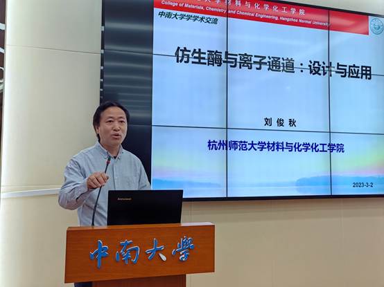 刘又年经理代表公司对章鹏飞经理一行到公司交流表示热烈欢迎,并简单介绍了出席会议的嘉宾。随后,国家杰青、杭州师范大学刘俊秋教授给在场的师生作了“仿生酶与离子通道:设计与应用”主题学术报告。刘教授从仿生酶与离子通道的设计思路、模型选择及纳米酶性能等进行了详尽的介绍,整个讲座过程气氛热烈,刘教授和在场的师生进行了深入的互动交流,在场的师生表示“这是一场学术盛宴,刘教授的讲座精彩纷呈,做的工作出神入化,让我们受益匪浅”。学术报告在师生们热烈的掌声中圆满结束。