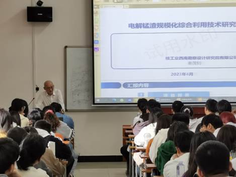 2023年4月11日上午,伟德victor1946官网新校区化学楼128报告厅举办了题为“电解锰渣规模化综合利用技术研究”的学术讲座,报告人是核工业西南勘察设计研究院秦茂钊教授。报告会由周涛教授主持,来自全院相关学科的师生们聆听了秦茂钊教授的精彩讲座。