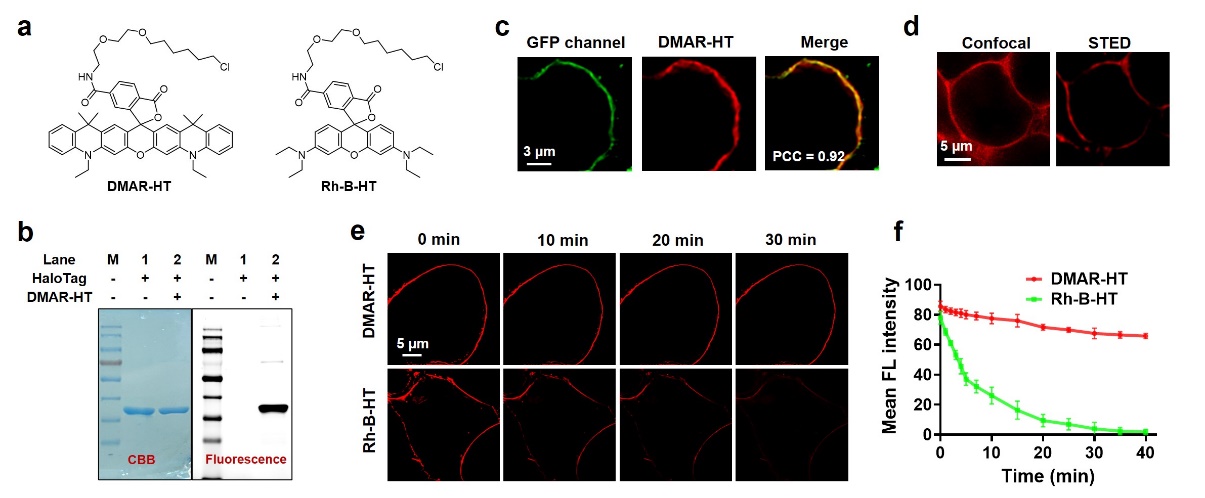 图2. DMA染料对HaloTag蛋白的实时STED成像。