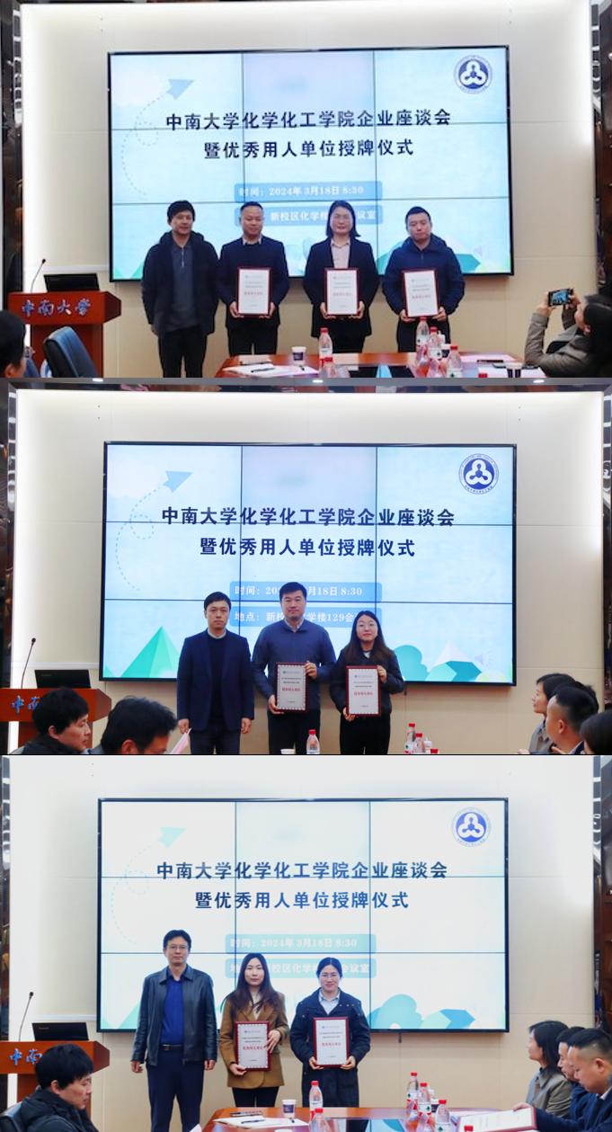 3月18日上午,伟德victor1946官网登录在新校区化学楼129会议室隆重举行了企业座谈会及优秀用人单位授牌仪式。伟德victor1946官网登录党委书记刘有才、副经理宋相志、何震、科研秘书李虎、学工办全体辅导员出席。浙江华友钴业股份有限公司、中伟新材料股份有限公司、三诺生物传感股份有限公司、中机国际工程设计研究院有限责任公司、厦门厦钨新能源材料股份有限公司、浙江帕瓦新能源股份有限公司、潮州三环(集团)股份有限公司等7家优秀企业及员工代表参会,会议由伟德victor1946官网登录党委副书记滕晓雯主持。