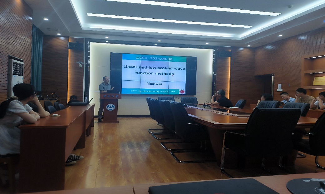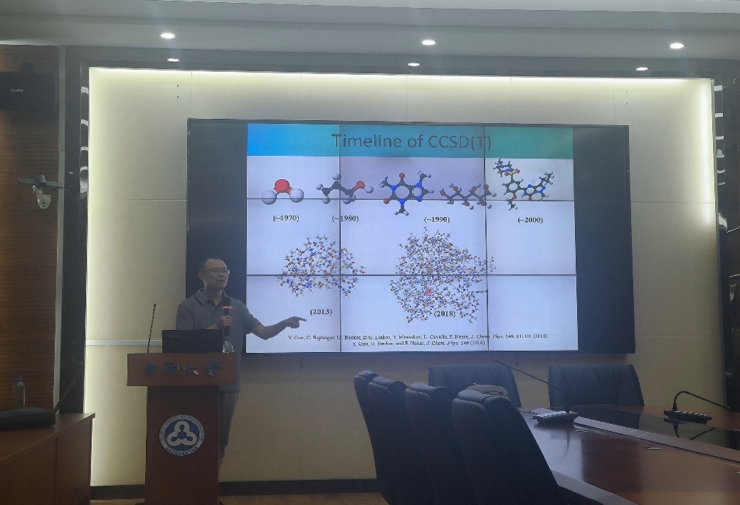 郭阳老师的报告题目是“Linear and low scaling single- and multi-reference wave function methods”,他的报告重点介绍量子力学在化学中的应用。介绍了波函数法中的单参考态法,局域相关方法,分子中的簇等。CCSD方法从1970年只能计算水分子发展到现在能计算2000~3000个原子,对蛋白质等大分子的分析具有十分重要的作用。总的来说,介绍了不同方法来计算复杂体系。