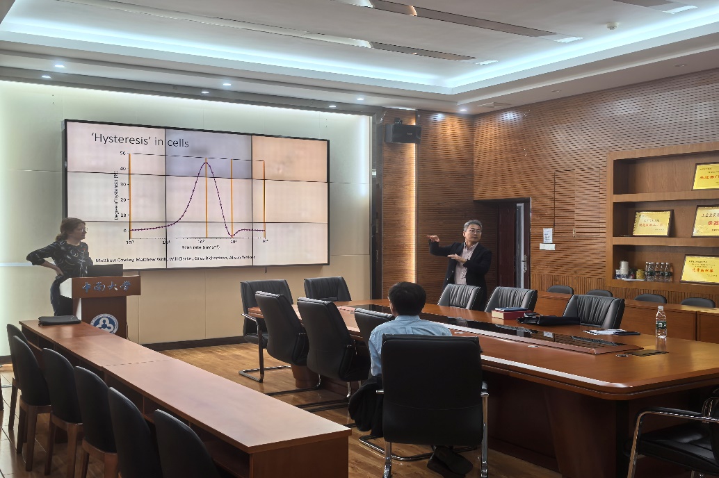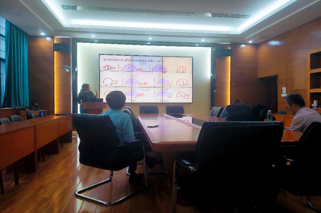 报道接近尾声,Petra Jane Cameron教授和现场聆听的老师和员工进行了精彩的互动。现场有同学对JV曲线的理解向教授请教,教授对从JV曲线可以得到的太阳能电池电化学信息提供了有效的学习方法和独特的见解。