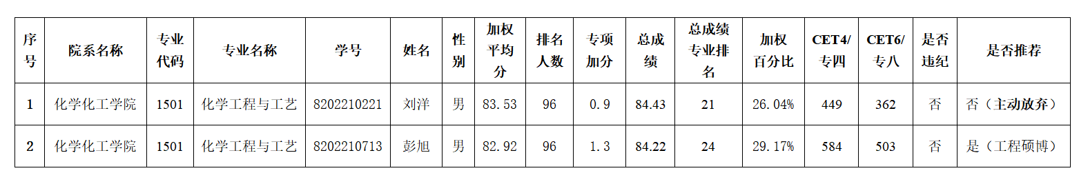 由于现拟推荐的员工主动放弃推免资格,推荐名额自动顺延至下一名同学,具体更改情况如下: