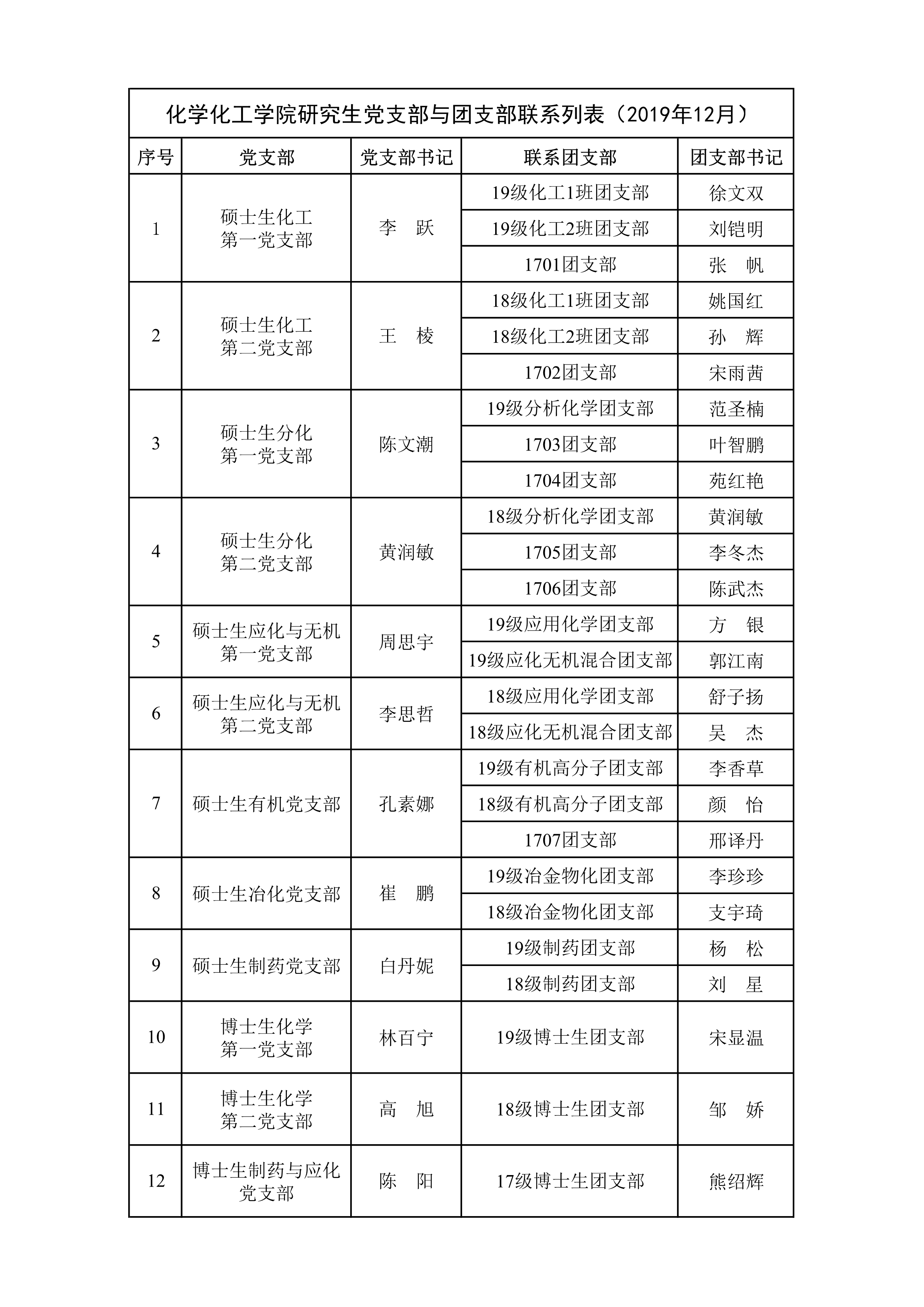 伟德victor1946官网登录研究生党支部与团支部联系列表(2019年12月)