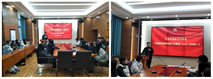 首先,赵元超同志领学习近平总书记关于党的建设的重要思想、关于党的自我革命的重要思想和关于全面加强党的纪律建设的重要论述(2024年),并着重讲解了中共中央办公厅印发的《全国党员教育培训工作规划(2024-2028年)》。新时代以来,以习近平同志为核心的党中央统筹中华民族伟大复兴战略全局和世界百年未有之大变局,以前所未有的决心和力度推进全面从严治党,创造性提出一系列具有原创性、标志性的新理念新思想新战略,形成习近平总书记关于党的自我革命的重要思想,丰富和发展了马克思主义建党学说,标志着我们党对马克思主义政党建设规律、共产党执政规律的认识达到新高度。