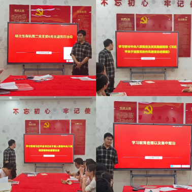 2025年6月6日,硕士生有机第二党支部在新校区化学楼132召开2025年6月份主题党日活动。会议由党支部书记左浩含同志主持,支部全体党员参加。会议分为三个部分:深入贯彻中央八项规定精神专题学习研讨会;支部接收预备党员和转正大会;支部工作部署及收取党费。