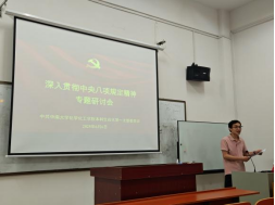 会议第一项,召开深入贯彻中央八项规定精神专题研讨会。支部书记邓志伟同志带领全体党员同志学习中央八项规定精神,组织大家一同观看《八项规定改变中国》并对《习近平关于加强党的作风建设论述摘编》进行交流研讨。通过学习,全体党员清醒看到面对新时代新征程的新形势新任务,抓作风建设、抓中央八项规定精神贯彻落实只有进行时,没有完成时。全体党员也充分认识到在全党开展深入贯彻中央八项规定精神学习教育的重要意义,只有扎实开展深入贯彻中央八项规定精神学习教育,才能以作风建设新成效为进一步全面深化改革、推进中国式现代化提供有力保障。