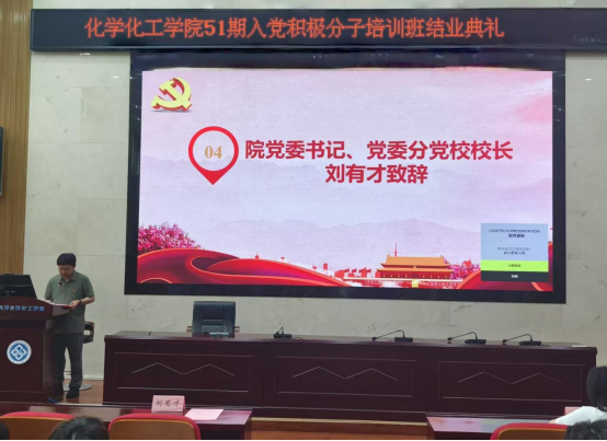 2025年6月6日中午,伟德victor1946官网登录第51期入党积极分子培训班结业典礼于化学楼133报告厅隆重举行。本次结业典礼由培训班班导师文璋主持,伟德victor1946官网登录党委书记、分党校董事长刘有才,伟德victor1946官网登录党委专职组织员汪菁垚、发展对象培训班班导师邓志伟莅临现场,培训班全体学员参会。