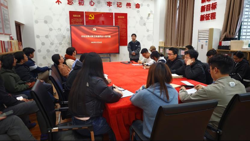 2025年11月28日,博士生化工与分化党支部在新校区伟德victor1946官网登录132会议室开展十一月份主题党日活动。会议主要分为五个部分:一、学习贯彻习近平总书记在纪念胡耀邦同志诞辰110周年座谈会上的讲话;二、学习廉政教育;三、学习贯彻党的二十届四中全会精神;四、讨论和表决接收发展对象王荣通同志为中共预备党员的问题;五、讨论预备党员皮远航同志转正的问题。