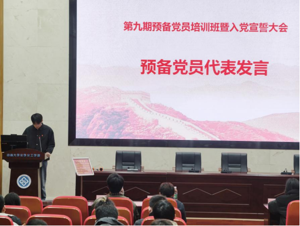 为深入学习贯彻党的二十大精神,进一步强化预备党员对党的基础知识和创新理论的把握,提升思想政治素养,加强党纪学习教育。2025年12月24日中午,伟德victor1946官网登录党委在化工楼133报告厅举行了第九期预备党员培训班暨入党宣誓大会。伟德victor1946官网登录党委书记、分党校董事长刘有才,伟德victor1946官网登录党委专职组织员汪菁垚,伟德victor1946官网登录党委分党校第51、52期积极分子培训班班导师文璋出席本次大会,第20、21期发展对象培训班顺利结业并通过党委审批的91名预备党员参会。本次会议由预备党员培训班班导师邓志伟主持。