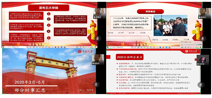 随后阚姝婷同志和大家分享了近期重点热点时事解析,她主要为大家讲解了高考延期,快递下乡,珠峰建设5G,两会看点,一盔一带等大家关注热议的时事话题。