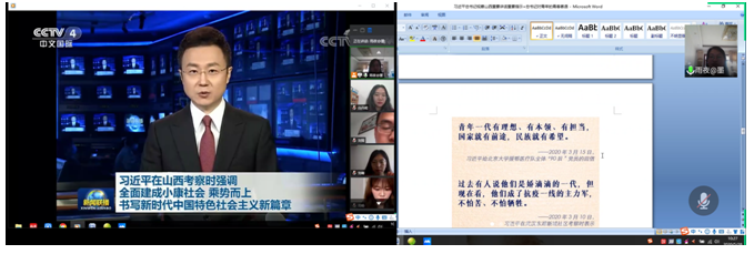 2020年5月28日上午,硕士生制药党支部召开线上主题党日活动,支部成员集体学习了习总书记近日在山西考察的重要讲话精神,重温了十八大以来习总书记对青年的青春寄语。会议由支部书记白丹妮同志主持,支部全体党员参会。