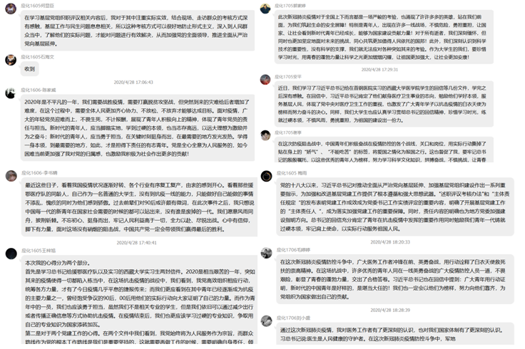 首先,张沛毅同志会议中带领大家一块学习了中共中央总书记、国家主席、中央军委主席习近平的重要文章《团结合作是国际社会战胜疫情最有力武器》。学习结束后,支部党员大家就这次疫情防疫攻坚战的情况和学习重要讲话的想法发表了各自的看法,会议讨论十分热烈。大家都一致认为,我国疫情防控和复工复产之所以能够有力推进,根本原因是党的领导和我国社会主义制度的优势发挥了无可比拟的重要作用,也在于全国人民的团结与共同努力。在全国笼罩在新冠恐慌下,有一批人自愿前往防疫第一线,党员发挥了模范作用,而其中“90后”党员更是呈现了无畏的精神,为此次战胜疫情做出重大贡献。现在疫情逐渐过去,我们不仅要牢记此次疫情中那些不惧危险,勇于冲在防疫第一线的“战疫人”,更要向他们学习,展现青年人该有的担当与承担一名优秀党员应有的责任。2020年是不平凡的一年,是我们年轻党员在党的号召下,投身于建设,打赢脱贫攻坚战的关键一年,我相信在党的领导下,战胜了新冠的我们,2020年将是完美的收官之年。