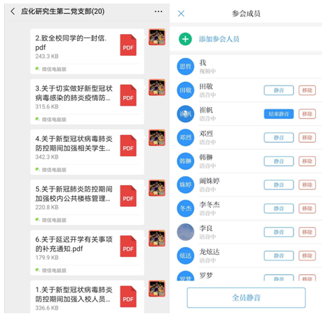 为让大家更加深入了解党中央决策部署及科学防疫措施,引导党员同志带头用科学的辩证思维正确看待此次疫情,增强战“疫”必胜信心,硕士生应化与无机第二党支部于2020年2月20日在学习强国平台上通过强国视频会议功能开展了一次以“科学防疫,党员先行”为主题的线上党日活动。会议由支部书记李思哲同志主持,全体党员及入党积极分子参加。