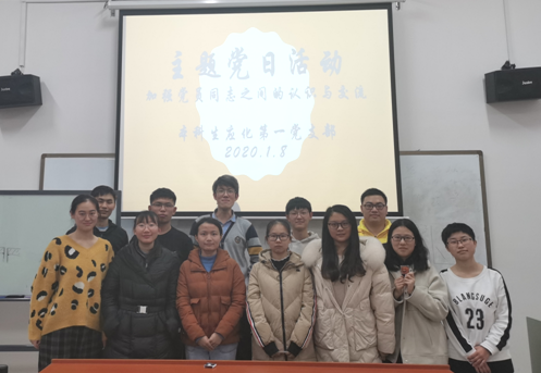 1月8日晚,本科生应化第一党支部在化学楼125教室积极开展了2020年1月份主题党日活动,本次会议由支部书记马翠鲜同志主持。