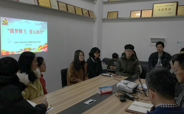 近期,冶金物理化学系“双带头人”教师党支部书记工作室持续开展“圆梦腾飞 爱心助学”帮扶困难员工系列活动。在“不忘初心、牢记使命”主题教育开展期间,工作室主要负责人纪效波和胡久刚等同志带领其他成员深入基层,广泛听取师生意见和建议以及征求学工办等相关部门意见后,召开支部党员大会,经研究决定,一致同意对资源化学方向家境贫困的四名本科生和两名研究生同学进行资助帮扶。