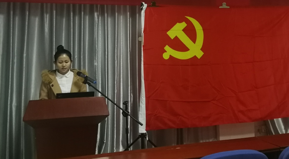 2018级博士生邹娇作为预备党员代表上台发言。她表示,要将入党誓词“终身铭记,身体力行”,保证做到自觉坚持党的根本宗旨,坚持不断提升个人素质和思想政治修养,立足本职、发挥先锋作用,做出更好的成绩。