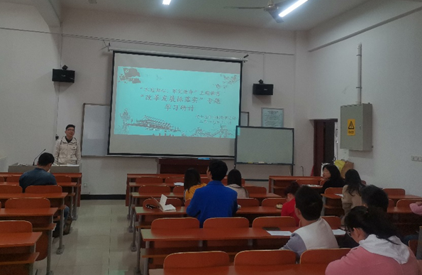 2019年11月4日下午,根据校院两级党委对于开展“不忘初心、牢记使命”主题教育的部署要求,博士应化与制药党支部在化学楼128教室组织第三专题学习研讨,主题为:改革发展抓落实。机关及实验中心党支部张茂林书记出席并为支部成员讲党课。会议由支部书记陈阳同志主持。