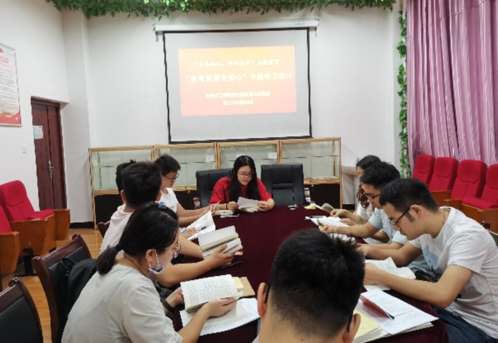 2019年9月26日上午,博士化学第二党支部在新校区化学大楼132党员活动室开展了“不忘初心、牢记使命”主题教育。本次会议由支部组织委员邹康宇主持,围绕“教育报国守初心”主题开展了一次系统全面的研讨学习。