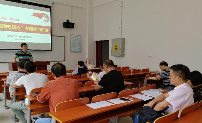 2019年9月25日,无机化学系党支部在化学楼124教室开展主题党日活动,支部书记张寿春主持。