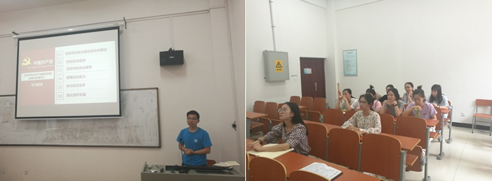 5月29日下午,研究生2018级分化党支部在新校区化学大楼125教室开展五月份主题党日活动。支部成员就《中共中央关于加强党的政治建设的意见》及习近平总书记在纪念五四运动100周年大会上的重要讲话精神进行了深入学习研讨。本次活动由支部书记陈阳同志主持。