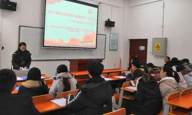 随后,大会进行了民主评议党员工作。党员同志依次走上讲台汇报自己2018年度在学习、生活中的得与失,对自己仍存在的问题进行了透彻分析。周宁同志说,自己在过去的一年里做到的最重要的事情就是坚持考研到最后一刻,但因为全身心备战而没有时间为身边的同学们更好地服务,这是他2018年最大的遗憾。其他党员则直言不讳地指出了他存在的缺点和不足,并希望周宁同志能认真听取意见积极改正。经过民主测评无记名投票,马翠鲜、周宁、钟栋成和谢辰泽等四名同志被评为优秀等次党员。