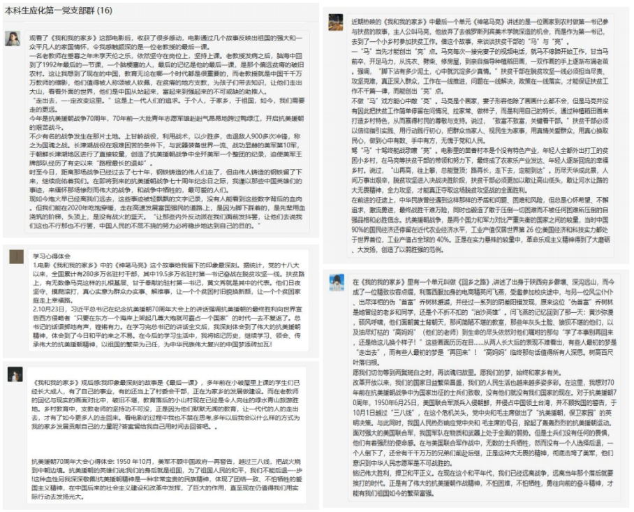 最后,各位党员在线上发表了观影感想以及对抗美援朝精神的理解与收获。