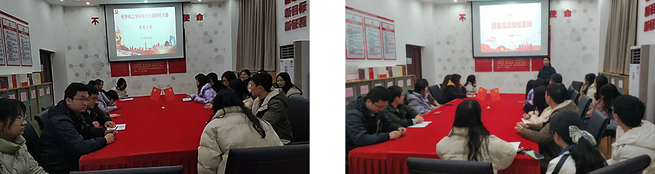 会议第一项召开支部党员大会,讨论接收邹俊娜、刘芳、陈立威三位同志为预备党员事宜。唐美同志首先宣读了会议具体流程,邹俊娜等三位同志分别从思想、学习、工作、生活等方面对自己的个人情况做了详细汇报,支委会介绍了其教育和考察情况。经支部党员充分讨论,正式党员进行无记名投票逐个表决,大会全票通过同意接收三位同志为中共预备党员。