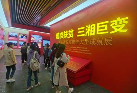 湖南是习近平总书记“精准扶贫”首倡地。2013年11月3日,习近平总书记来到十八洞村考察,在施成富家前坪,习总书记与乡亲们一起探讨脱贫之路时,首次提出了“精准扶贫”。因此此次记录湖南省扶贫案例的展会具有重要的意义。该展会分为“历史伟业”“首倡之为”“磅礴力量”“希望田野”四个篇章。在图片、文摘、视频、音频等传统展示手段的基础上,通过场景复原、电子图表、文物实物、艺术装置、观众互动等多种展示手段进行呈现。回顾党的十八大以来精准扶贫的重大决策部署,全面展示湖南作为精准扶贫首倡之地的首创之为,生动讲述湖南党员干部、社会各界和人民群众的典型事迹和感人故事,总结了一条建设美好湖南乃至于美好中国的道路。