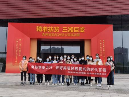 2021年4月16日,硕士生冶化党支部在湖南美术馆开展“学史明理”第一专题学习。活动主要是参观以“精准扶贫 三湘巨变”为主题的湖南省脱贫攻坚大型成就展。活动组织者为党支部书记崔鹏同志。
