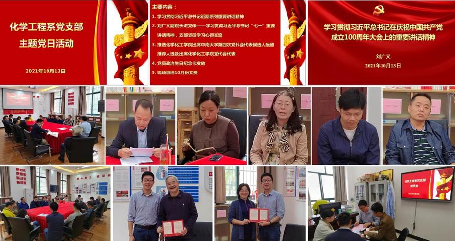 化学工程系党支部开展10月份主题党日活动