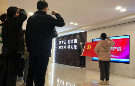 在课程最后,支部党员重温了入党誓词,铮铮誓言表达了作为党员的责任与担当,重温了入党时的拳拳初心,许下了对党忠诚、永不叛党的坚定承诺。未来属于青年,希望寄予青年。一百年前,一群新青年高举马克思主义思想火炬,在风雨如晦的中国苦苦探寻民族复兴的前途。一百年来,在中国共产党的旗帜下,一代代中国青年把青春奋斗融入党和人民事业,成为实现中华民族伟大复兴的先锋力量。新时代的中国青年要以实现中华民族伟大复兴为己任,增强做中国人的志气、骨气、底气,不负时代,不负韶华,不负党和人民的殷切期望。学习结束后,支部成员纷纷表示要加强党史的学习,不忘初心,牢记使命,为祖国的繁荣富强和个人的美好未来而共同奋斗!