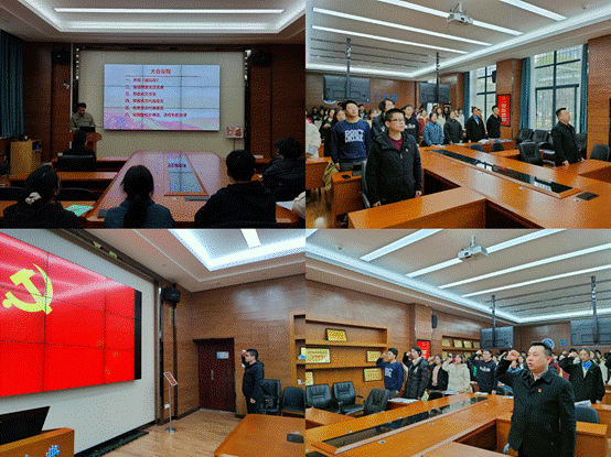 大会在《国际歌》声中拉开帷幕。赵元超宣读近期新接收的65名预备党员名单,随后由李璞领誓,全体预备党员高举右拳面向党旗庄严宣誓。