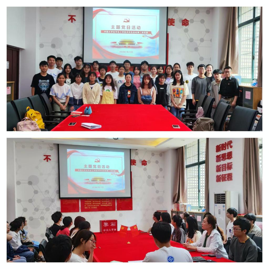 5月23日下午,本科生应化第二党支部在化学楼132会议室开展5月份主题党日活动,会议由支部书记赵元超同志主持,支部全体党员参加,伟德victor1946官网登录党委委员、组织员李璞同志列席指导。