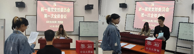 会后,开展新一届支部委员会第一次全体会议。经无记名投票,选举胡雨琪为书记、关茜元为副书记,并讨论确定其他委员的分工,报上级党组织审批。