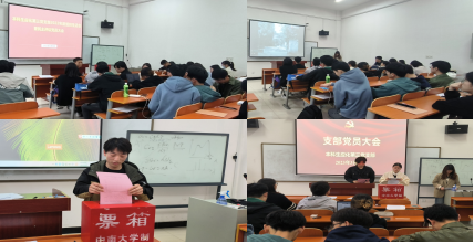 会议第四项,开展支部委员换届选举工作。由正式党员无记名投票,胡雨琪、关茜元、杨林堃、钟标当选支部新一届委员会委员。